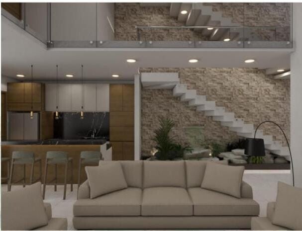 La cocina se encuentra conectada directamente con la sala y a su vez con la escalera. Con un estilo de cocina integral, colores neutros y maderas siendo protagonista, la cocina formara parte de un sitio agradable para el usuario y sus visitas.